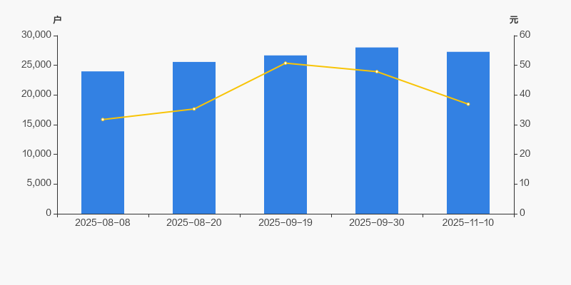 2025年8月8日至今,公司股东户数显著增长,区间涨幅为13.72%。2025年8月8日至2025年11月10日区间股价上涨16.36%。