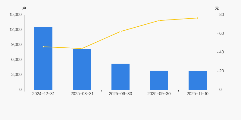 2024年12月31日至今,公司股东户数显著大幅下降,区间跌幅达69.92%。2024年12月31日至2025年11月10日区间股价上涨66.50%。