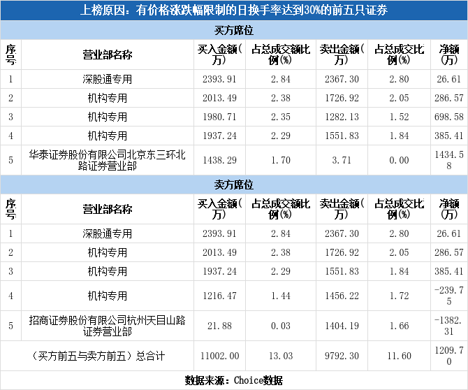 多主力现身龙虎榜,民生健康上涨7.62%(11-14)