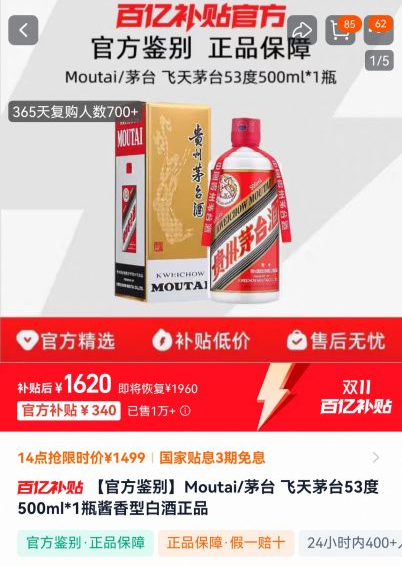 相比之下,官方授权渠道的飞天茅台零售价为1869元/瓶,第八代五粮液为895元/瓶,与前述补贴价相差200~250元不等。
