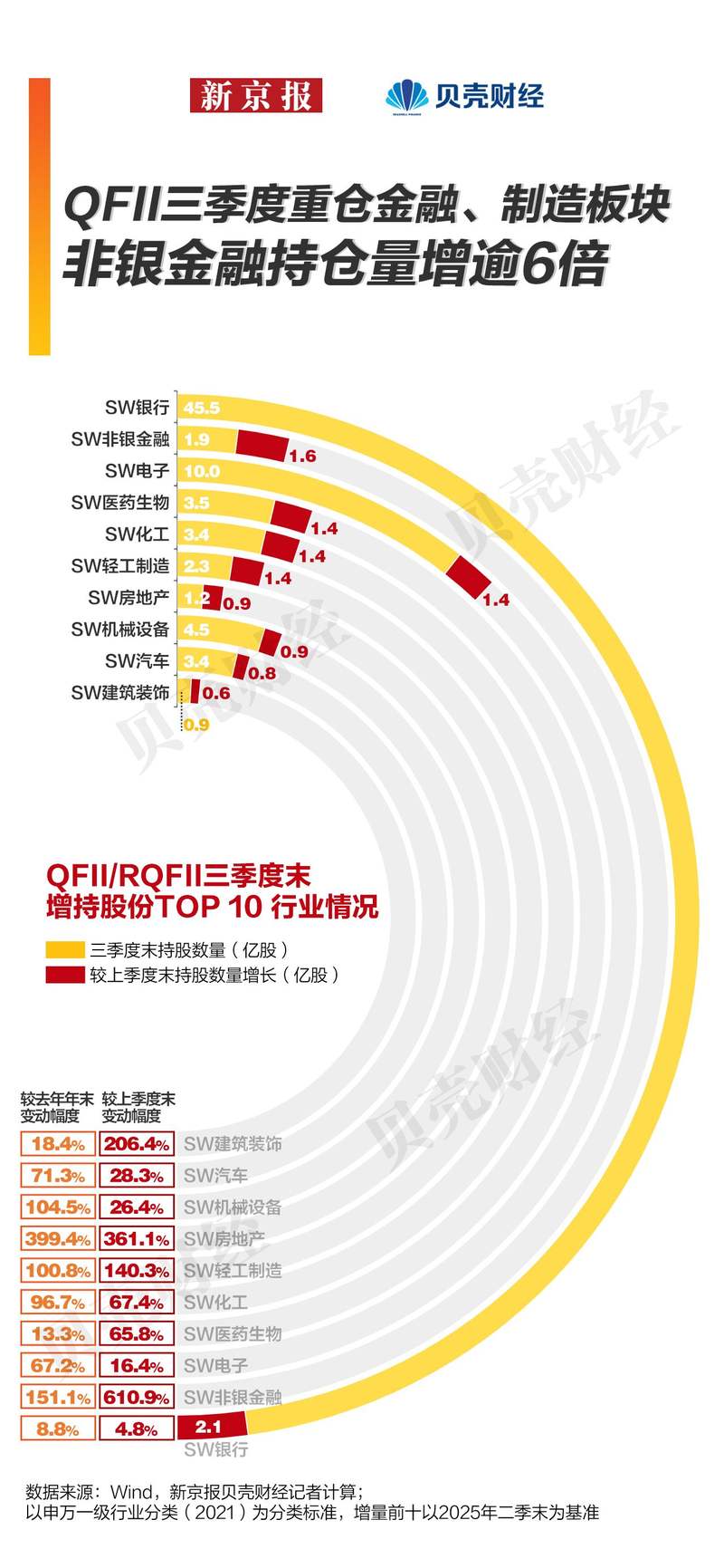 三季度外资机构布局A股呈现何种变化?哪些行业、哪些个股受青睐?哪些遭大幅减持?新京报贝壳财经记者基于三季度外资持仓数据进行梳理,呈现外资布局的“变”与“不变”。