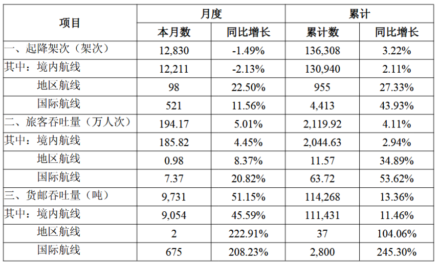 海南机场:10月客货吞吐量均同比增长,起降架次同比下降1.49%