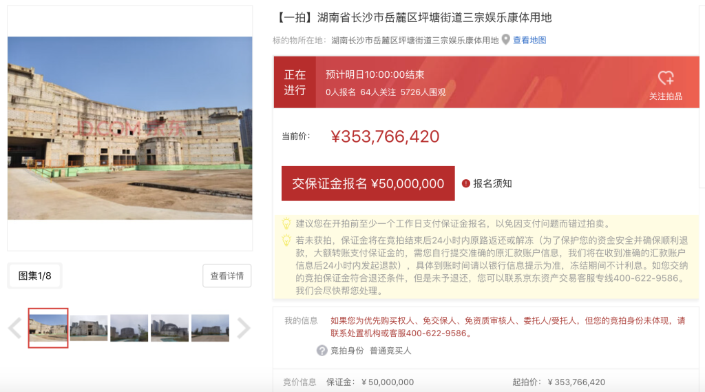 11月14日,据京东资产交易平台披露的信息显示,湖南省长沙市岳麓区坪塘街道三宗娱乐康体用地正在以约3.53亿元的价格拍卖。
