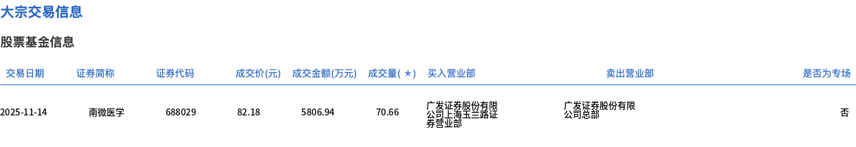 南微医学今日大宗交易折价成交70.66万股,成交额5806.94万元