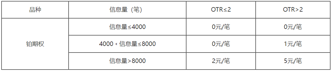 铂期权按日、按合约月份收取申报费,收费标准如下: