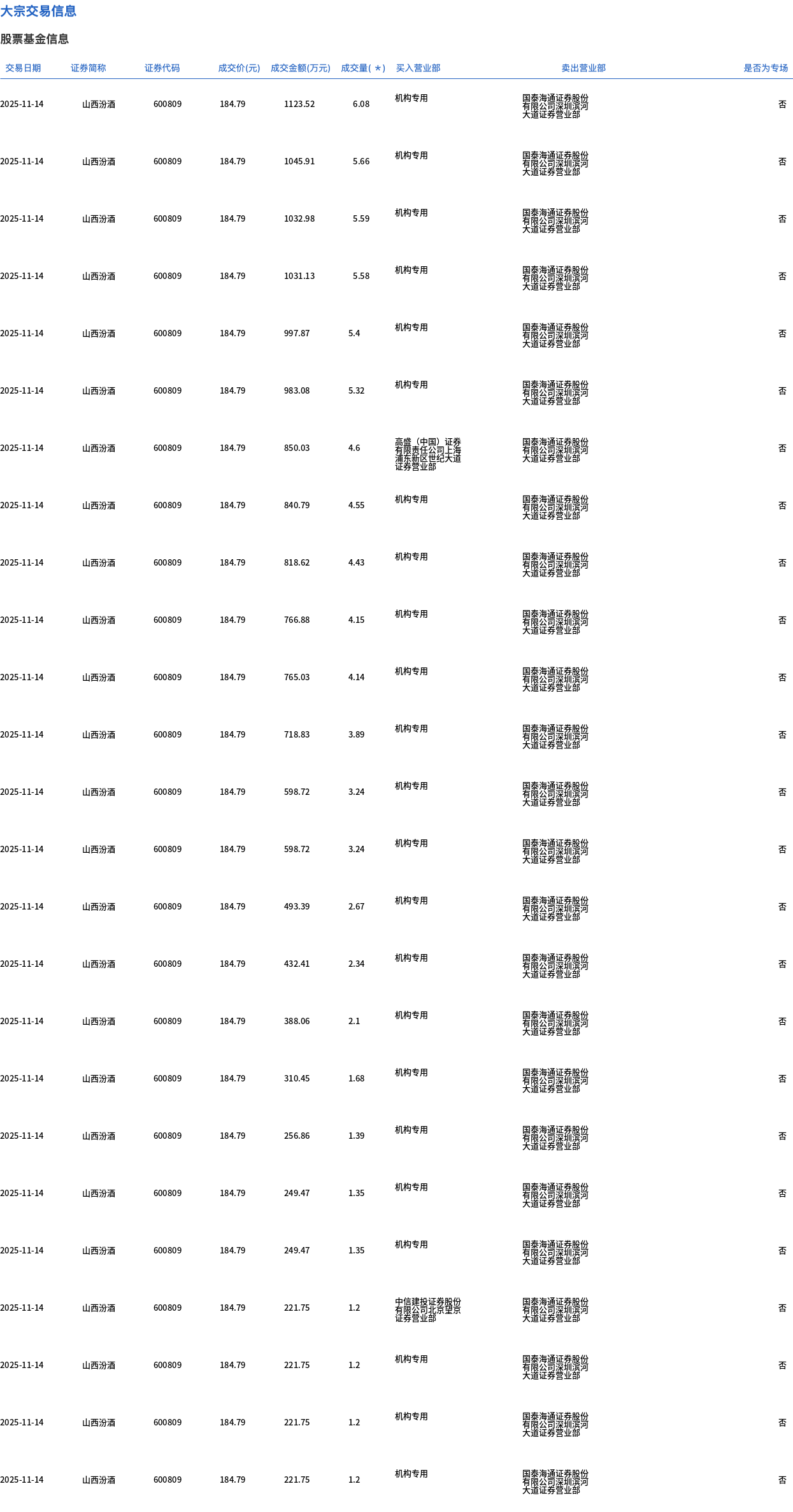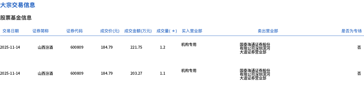 山西汾酒今日大宗交易折价成交330.76万股,成交额6.11亿元