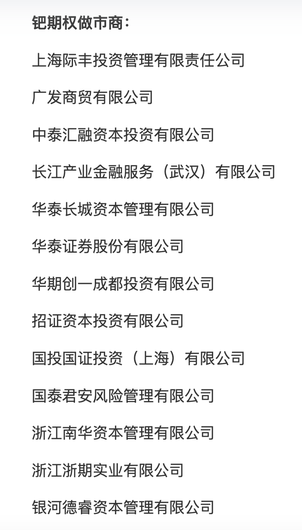 人民财讯11月14日电,广州期货交易所公布铂、钯期权做市商名单。