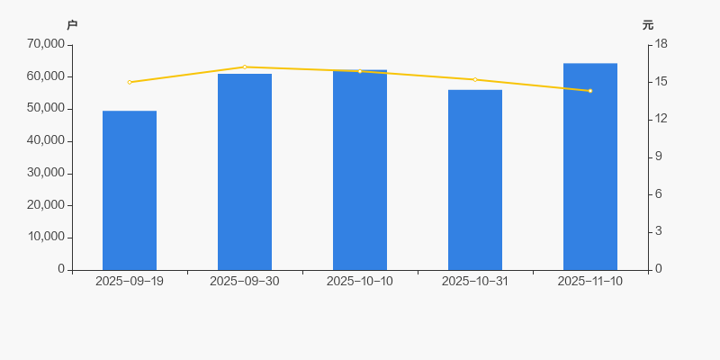 2025年9月19日至今,公司股东户数显著增长,区间涨幅为29.90%。2025年9月19日至2025年11月10日区间股价下降4.59%。