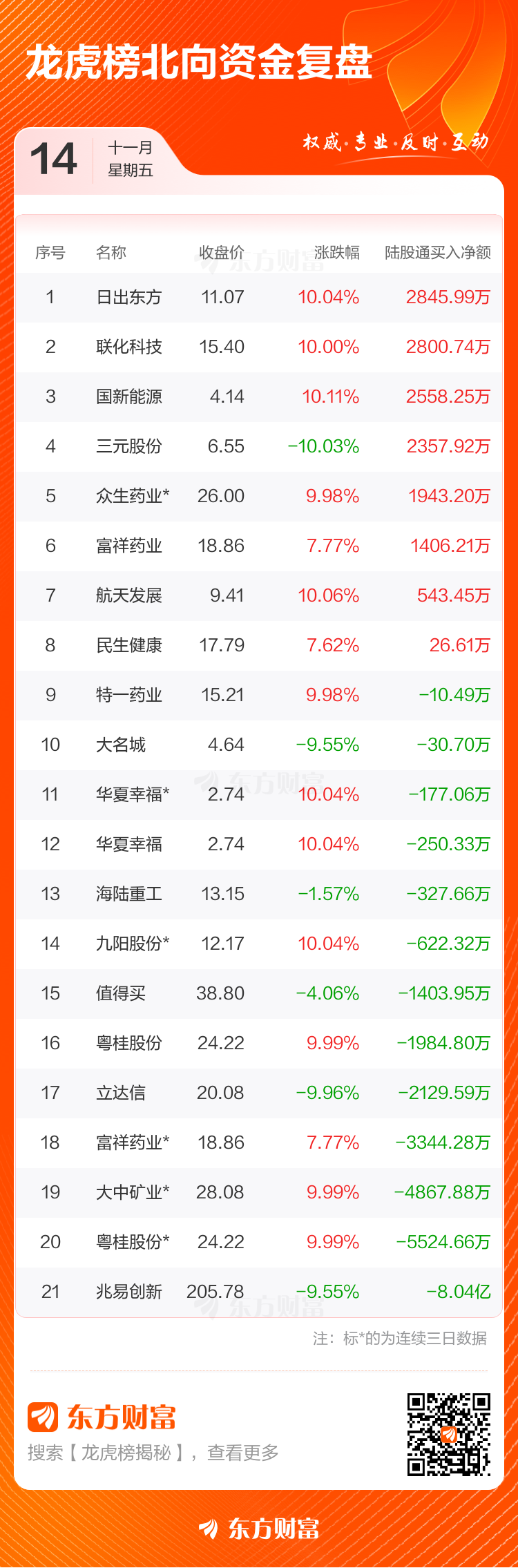 11月14日龙虎榜复盘:“宁波桑田路”1.33亿元净买入众生药业