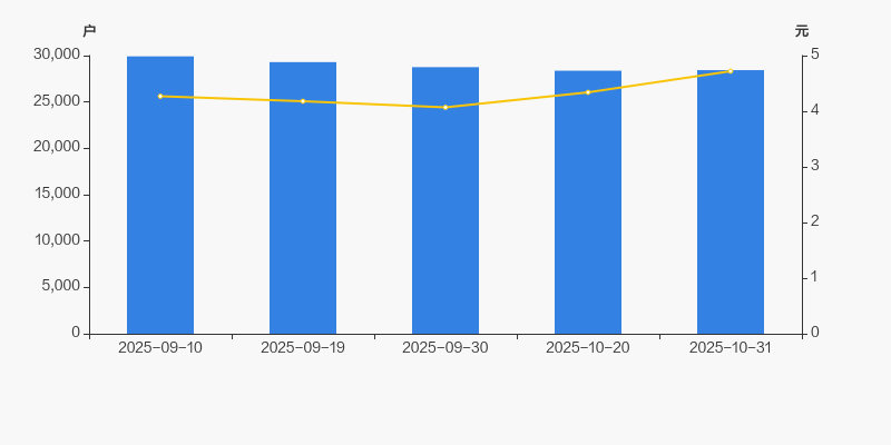 2025年9月10日至今,公司股东户数有所下降,区间跌幅为4.96%。2025年9月10日至2025年10月31日区间股价上涨10.54%。