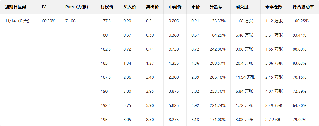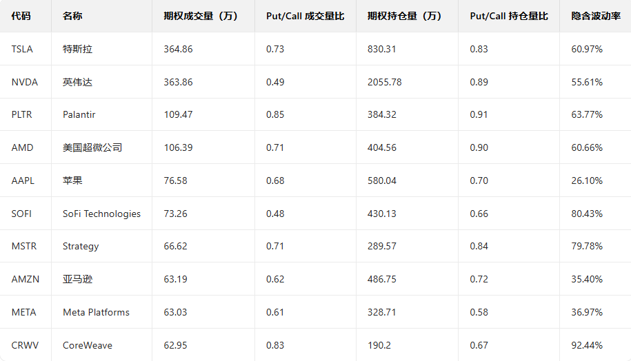 美股引申波动幅度排行榜前十(标的市值>100亿美元,且期权成交量>10万美元)