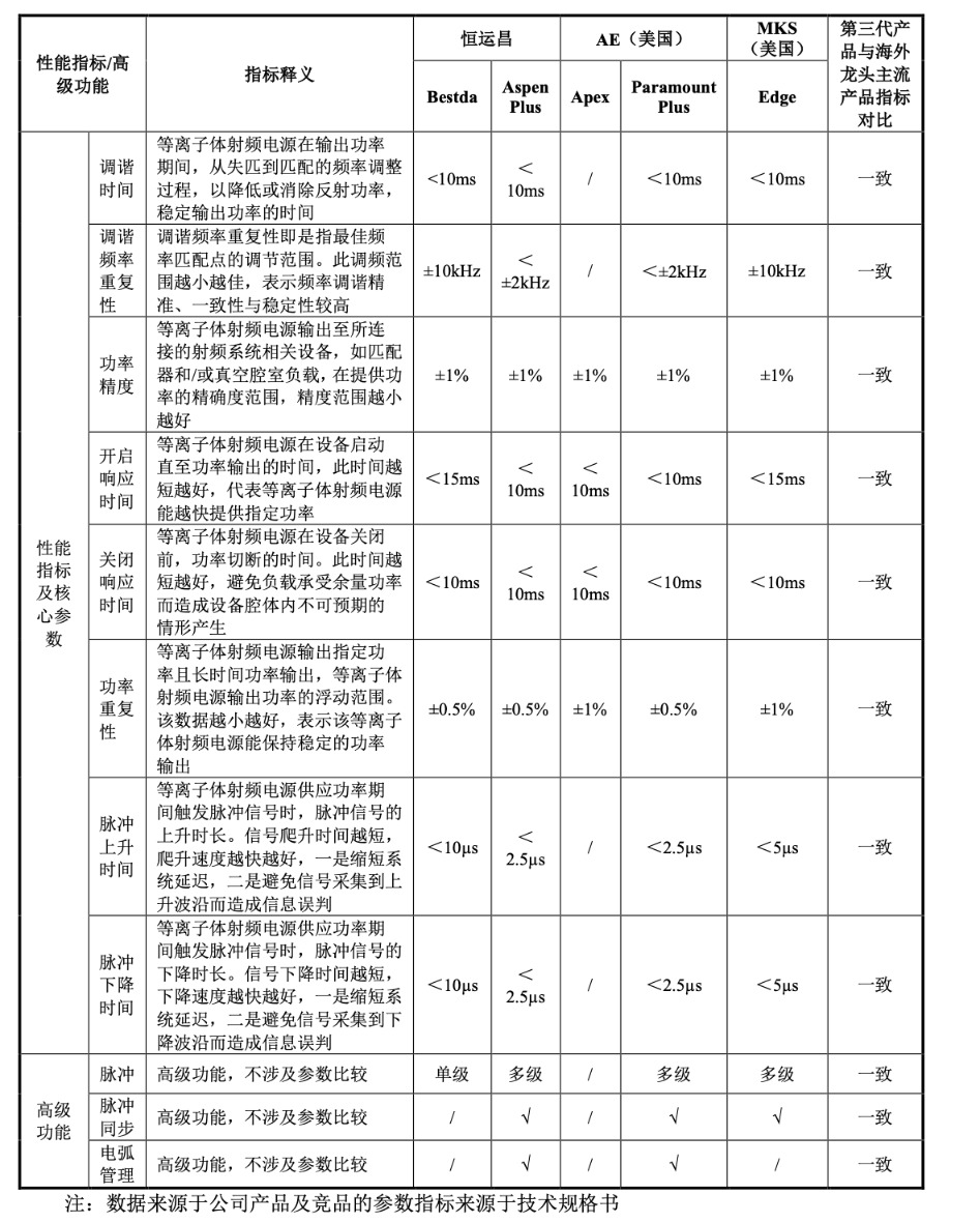 招股书显示,恒运昌自主研发的第二代产品Bestda系列可支撑28纳米制程,第三代产品Aspen系列更可支撑7-14纳米先进制程,达到国际先进水平,填补了国内空白。根据弗若斯特沙利文统计,2024年在中国大陆半导体行业国产等离子体射频电源系统厂商中,恒运昌的市场份额位列第一。