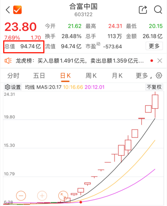 截至11月14日收盘,合富中国股价报23.80元/股,当天涨幅达7.69%,总市值为94.74亿元。