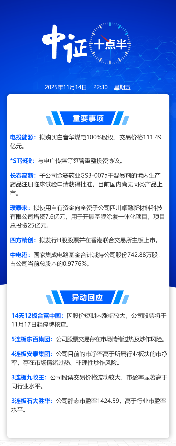 【中证十点半】14天12板牛股下周一起停牌核查;电投能源筹划重大资产重组