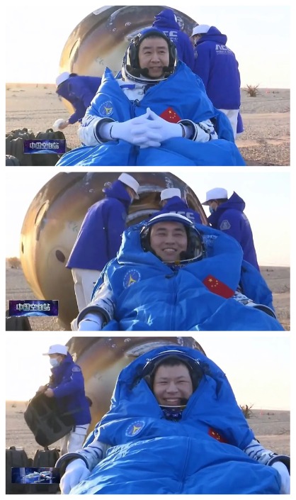 北京时间11月14日16时40分,神舟二十号航天员乘组乘坐神舟二十一号飞船返回舱在东风着陆场成功着陆。17时21分,神舟二十号航天员陈冬、陈中瑞、王杰全部安全顺利出舱,健康状态良好。