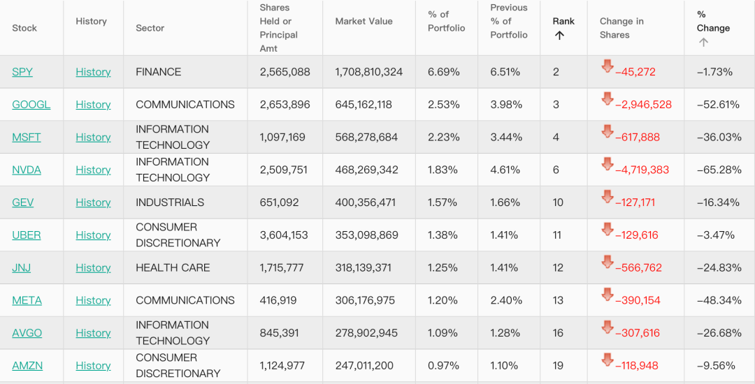 值得一提的是,桥水这种“减持个股、增持指数”的操作并非首次。例如,在2024年第四季度,桥水就曾经减持多个美股科技“巨头”并显著增持SPY。