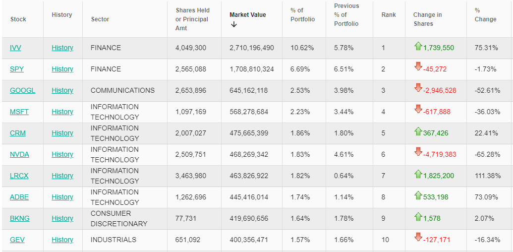13F文件显示,截至三季度末,巴克莱持有1亿股英伟达,相较于二季度末环比降低53.67%;花旗集团持有5711万股英伟达,持股比例相较于二季度末降低8.25%;纽约州共同退休基金持有2727万股英伟达,持股比例相较于二季度末降低5.38%。