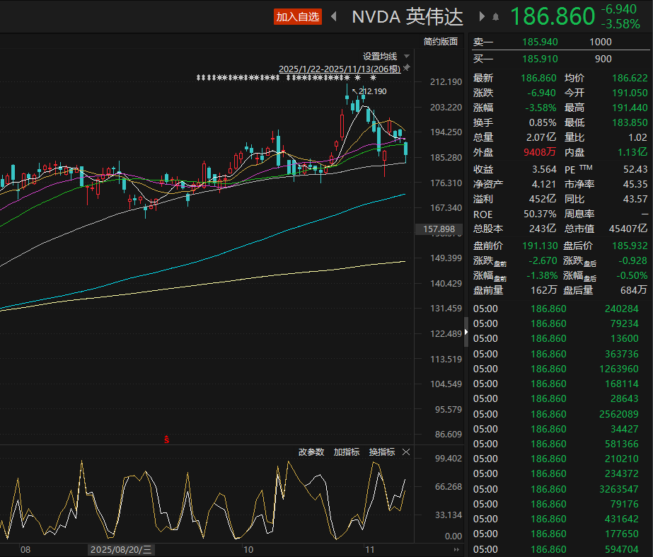 截至11月13日,英伟达今年以来涨幅近40%,且在上月底市值一度突破5万亿美元。不过,随着市场对人工智能泡沫担忧逐渐升温,其股价也开始出现大幅波动。