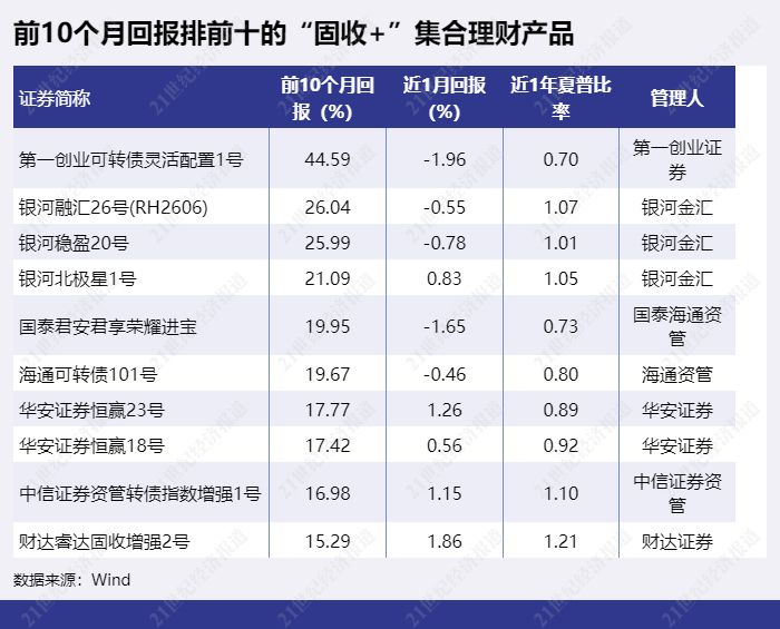 2、“固收+”产品:上榜“固收+”券商集合理财中一半10月收益为负