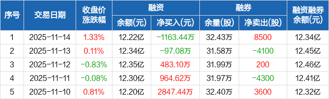 中直股份:融资净偿还1163.44万元,融资余额12.22亿元(11-14)