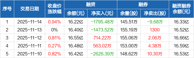 交通银行:融资净偿还1795.48万元,融资余额16.22亿元(11-14)