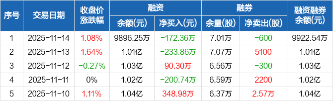 华纺股份:融资净偿还172.36万元,融资余额9896.25万元(11-14)