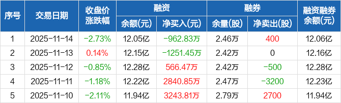 东睦股份:融资净偿还962.83万元,融资余额12.05亿元(11-14)