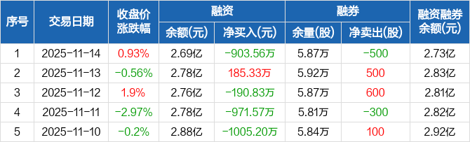 科博达:融资净偿还903.56万元,融资余额2.69亿元(11-14)