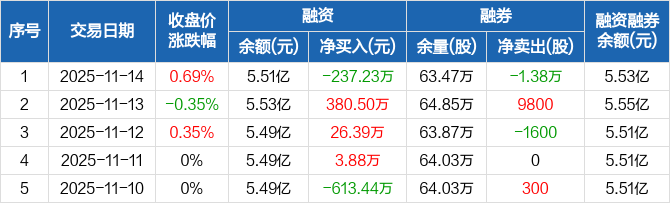 紫金银行:融资净偿还237.23万元,融资余额5.51亿元(11-14)