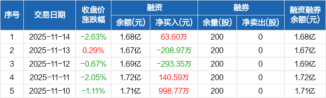 西高院:融资净买入63.6万元,融资余额1.68亿元(11-14)