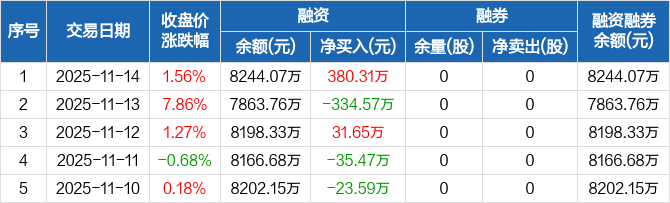鸿泉技术:融资净买入380.31万元,融资余额8244.07万元(11-14)