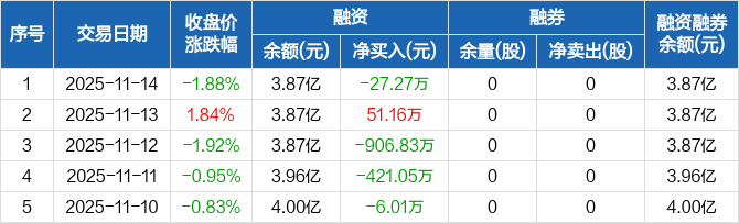 福立旺:融资净偿还27.27万元,融资余额3.87亿元(11-14)