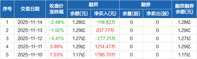 复洁环保:融资净偿还118.82万元,融资余额1.28亿元(11-14)