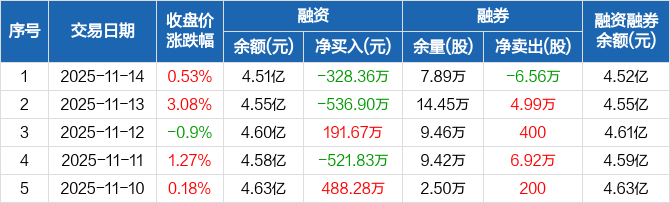 宁波建工:融资净偿还328.36万元,融资余额4.51亿元(11-14)