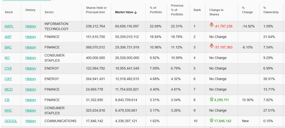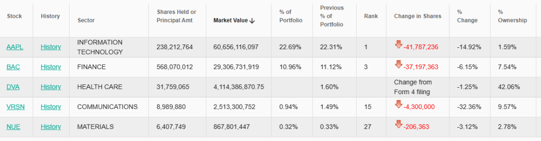 与此同时,伯克希尔连续第二个季度减持苹果公司股份,将其持有的苹果股票从2.8亿股降至2.382亿股,持股数较二季度末环比减少14.92%,持仓规模降至607亿美元。目前伯克希尔已出售了其曾持有的9.05亿股中的近四分之三,但苹果仍然是伯克希尔持有的最大股票。