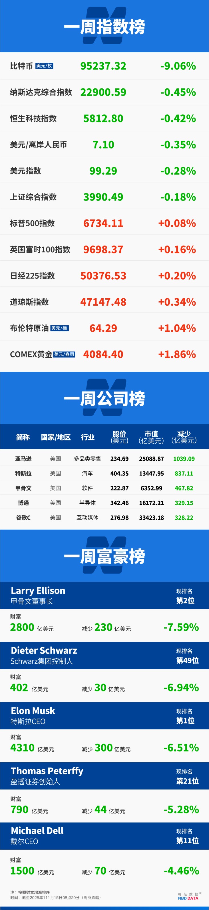 本周,美股三大指数涨跌不一,道指累涨0.34%,纳指累跌0.45%,标普500指数累涨0.08%。