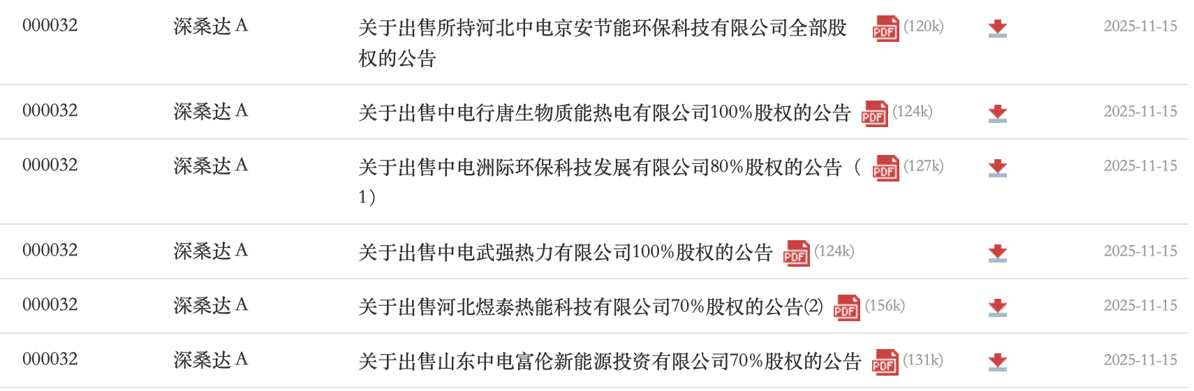 11月14日晚,深桑达A(000032)连发6条出售股权相关公告,为进一步聚焦主责主业,公司下属中国电子系统技术有限公司(简称“中国系统”)拟公开挂牌转让多家公司股权。