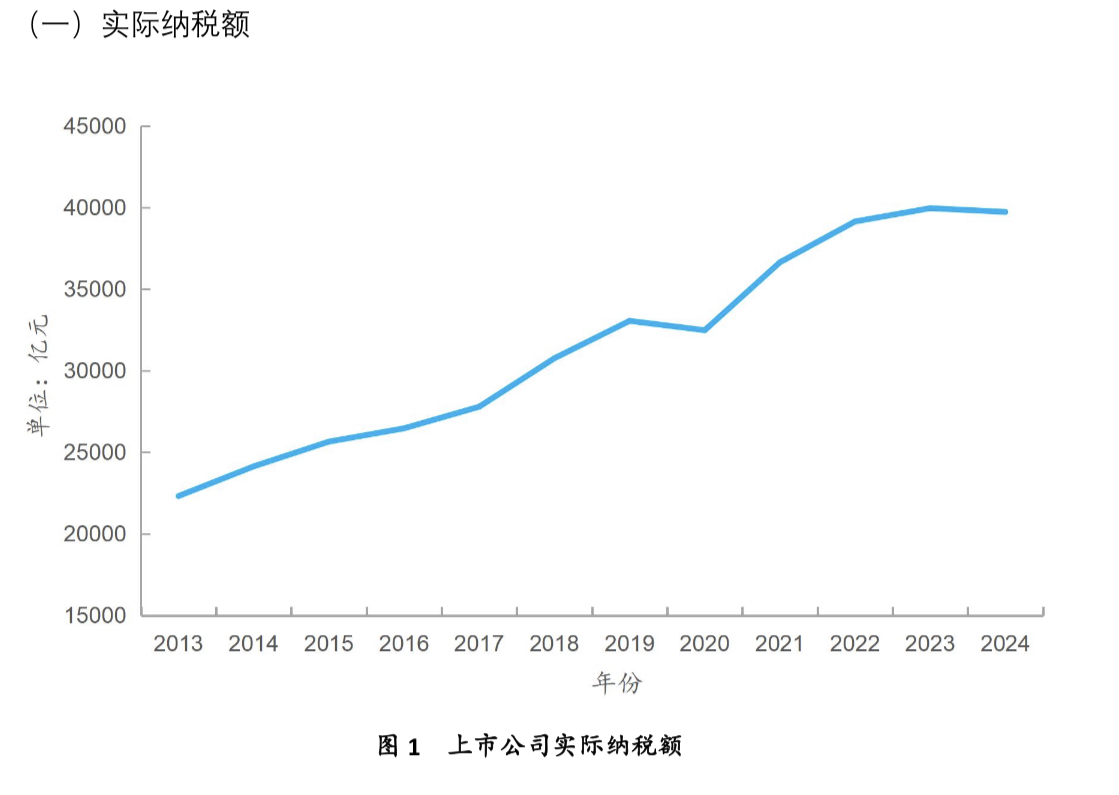 《报告》数据显示,2024 年,上市公司中的国有控股企业数量约占30%,贡献了近 80%的实际纳税额。