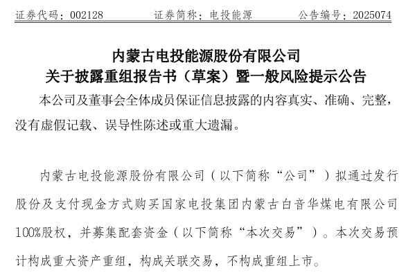 11月14日,公司召开了2025年第十三次临时董事会会议,审议通过了《关于〈内蒙古电投能源股份有限公司发行股份及支付现金购买资产并募集配套资金暨关联交易报告书(草案)〉及其摘要的议案》等与本次交易相关的各项议案。