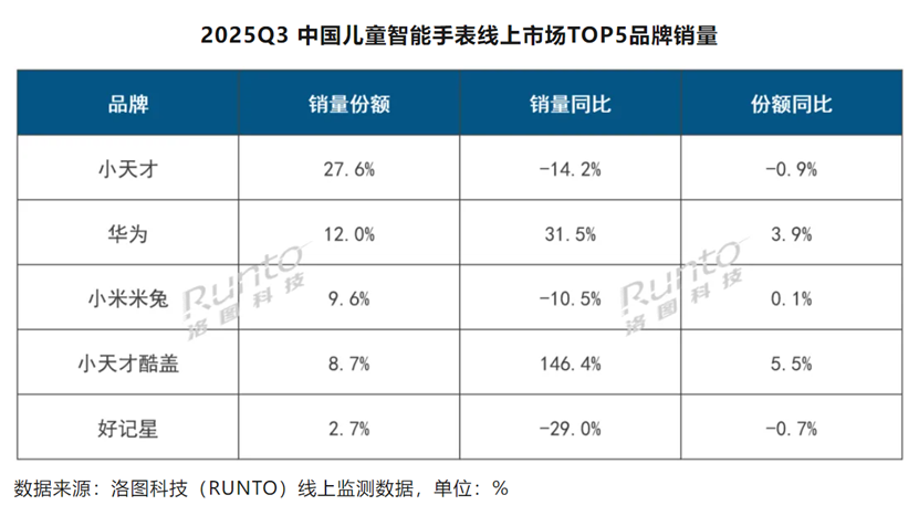 洛图科技则分析,华为的增长动力源于将成人手表的技术优势向儿童市场延伸:更精准的定位技术满足了安全需求、集成AI学习应用满足了教育需求,生态联动则吸引了注重产品综合实力的家长群体。