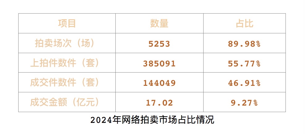 其中,网络拍卖占比提升,市场份额达到9.27%。2024年,纯网络拍卖上拍38.51万件,成交14.40万件。纯网络拍卖更趋于常态化。10万元以下成交拍品数量占比上升了0.5个百分点,为90.28%。拍品均价由上年的8.29万元下降至5.98万元。