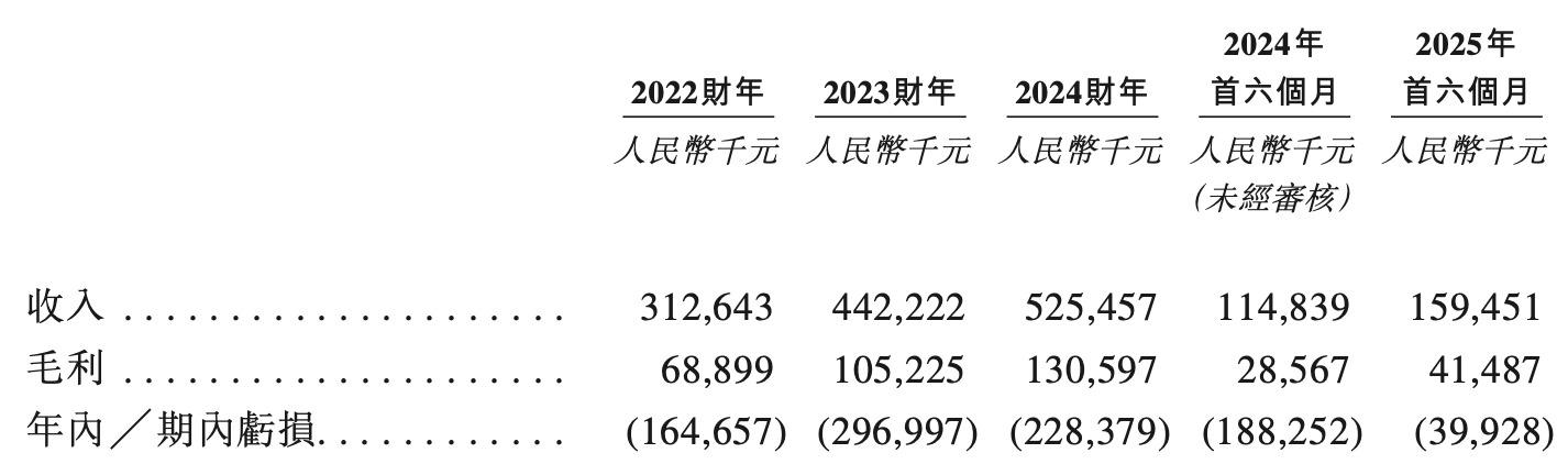 于2022财年、2023财年、2024财年以及2025年首六个月,德风科技利润分别为-1.65亿元、-2.97亿元、-2.28亿元、-3992.8万元人民币。