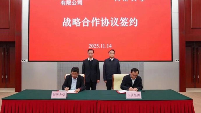 11月14日,同济大学与中国国家铁路集团有限公司签署战略合作协议,双方将进一步深化合作,服务交通强国铁路先行,共同为加快实现我国铁路高水平科技自立自强贡献力量。