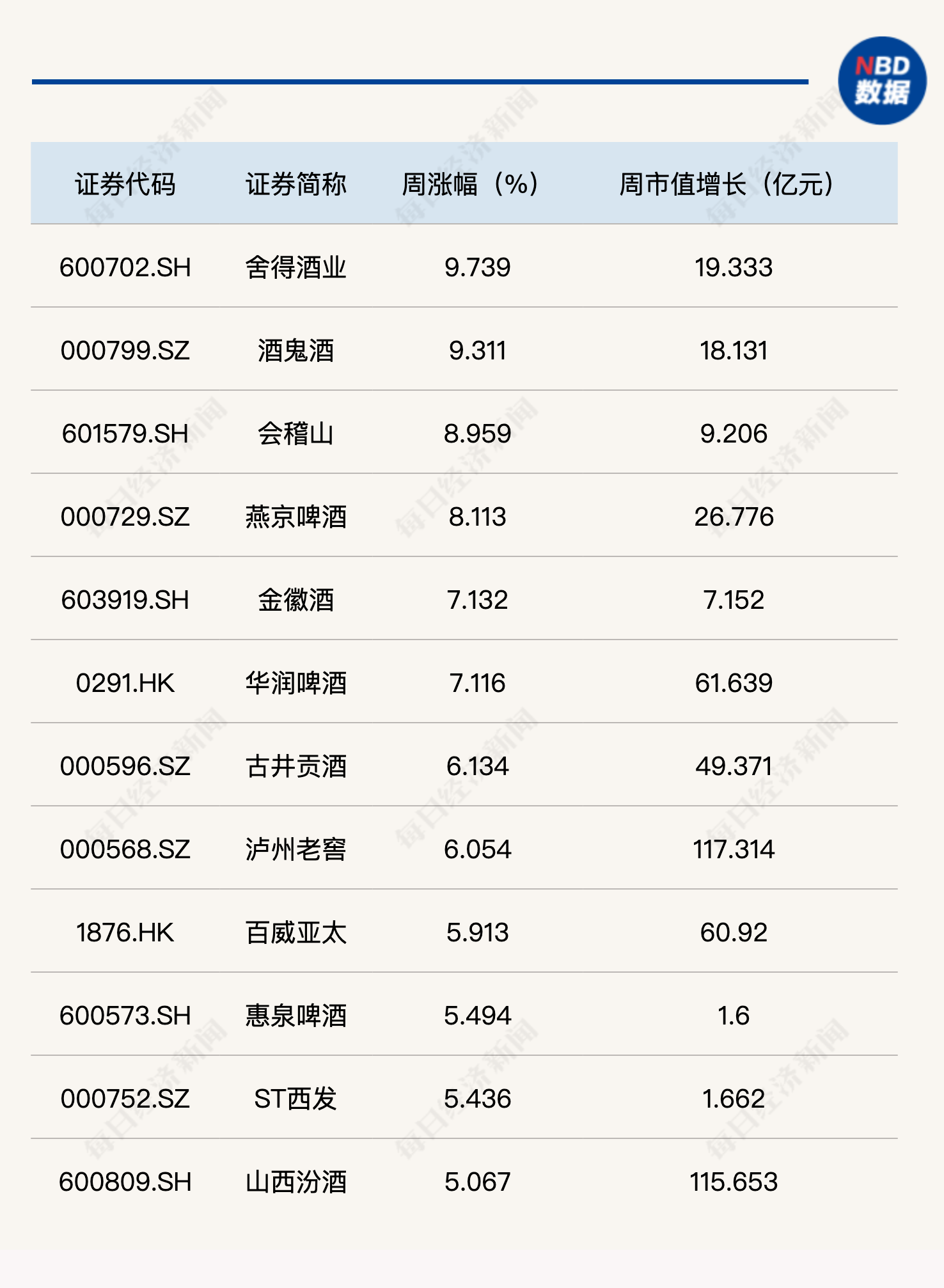 非白酒板块方面,啤酒行业同样反弹强劲,燕京啤酒、华润啤酒、百威亚太、惠泉啤酒以及ST西发的周涨幅均超过5%;珠江啤酒等3只啤酒股周涨幅也近5%,表现不俗。