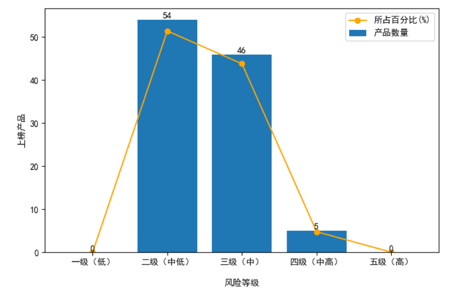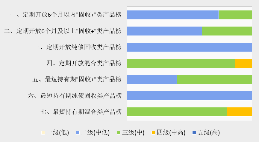 (注:榜单中彩色条形长度代表数值大小,同组数值越大,条形长度越长。R-Ⅰ、R-Ⅱ、R-Ⅲ、R-Ⅳ、R-Ⅴ分别代表产品风险等级一级(低)、二级(中低)、三级(中)、四级(中高)、五级(高)。)