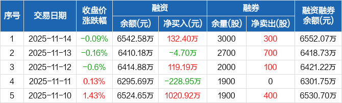 迪阿股份:融资净买入132.4万元,融资余额6542.58万元(11-14)