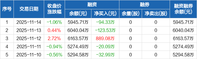 逸豪新材:融资净偿还94.33万元,融资余额5945.71万元(11-14)