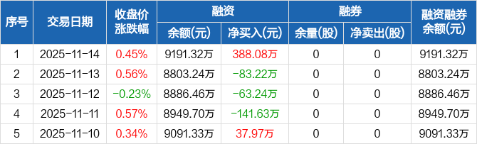 新巨丰:融资净买入388.08万元,融资余额9191.32万元(11-14)