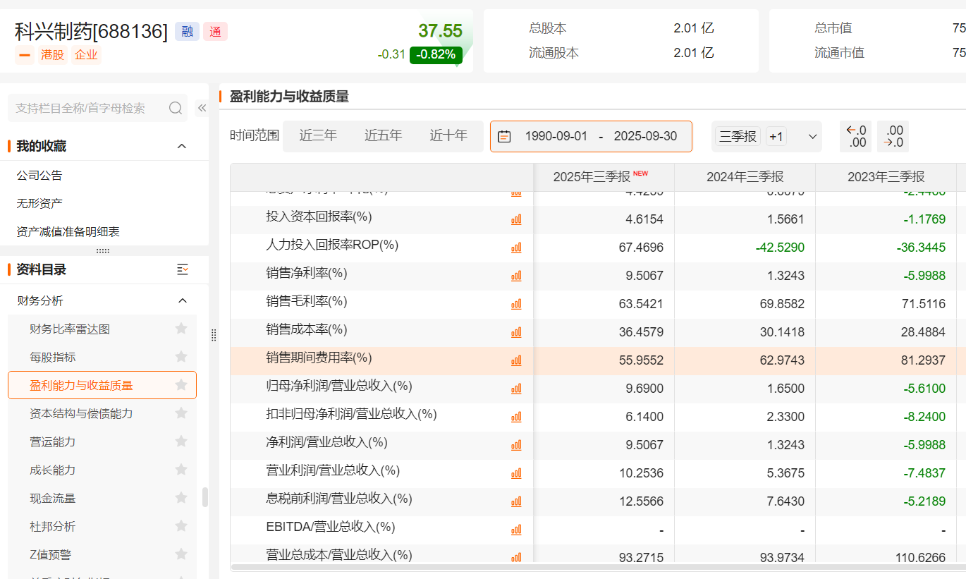 10月30日,科兴制药发布2025年三季报,报告显示,公司前三季度营业收入为11.48亿元,同比增长10.54%;归母净利润为1.11亿元,同比增长547.70%;扣非归母净利润为7045万元,同比增长190.65%;基本每股收益0.56元。