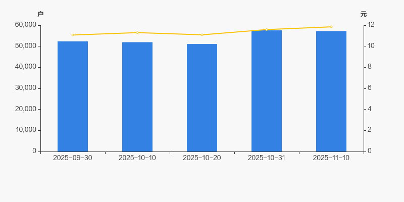 截至2025年11月10日,公司最新流通股本为3.33亿股。最新户均持有流通股数为5827,较上期略有上升;户均流通股市值为6.9万元。